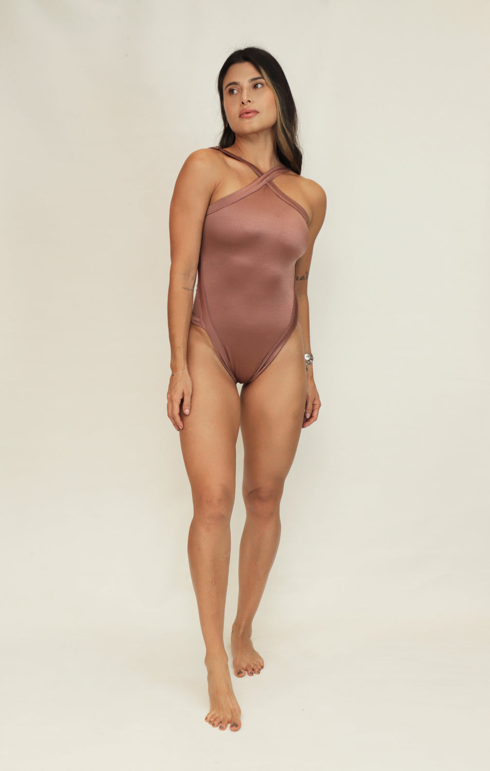 La fuerza del color se fusiona con la profundidad del mar, creando una pieza sofisticada y vibrante que evoca atardeceres junto al mar.