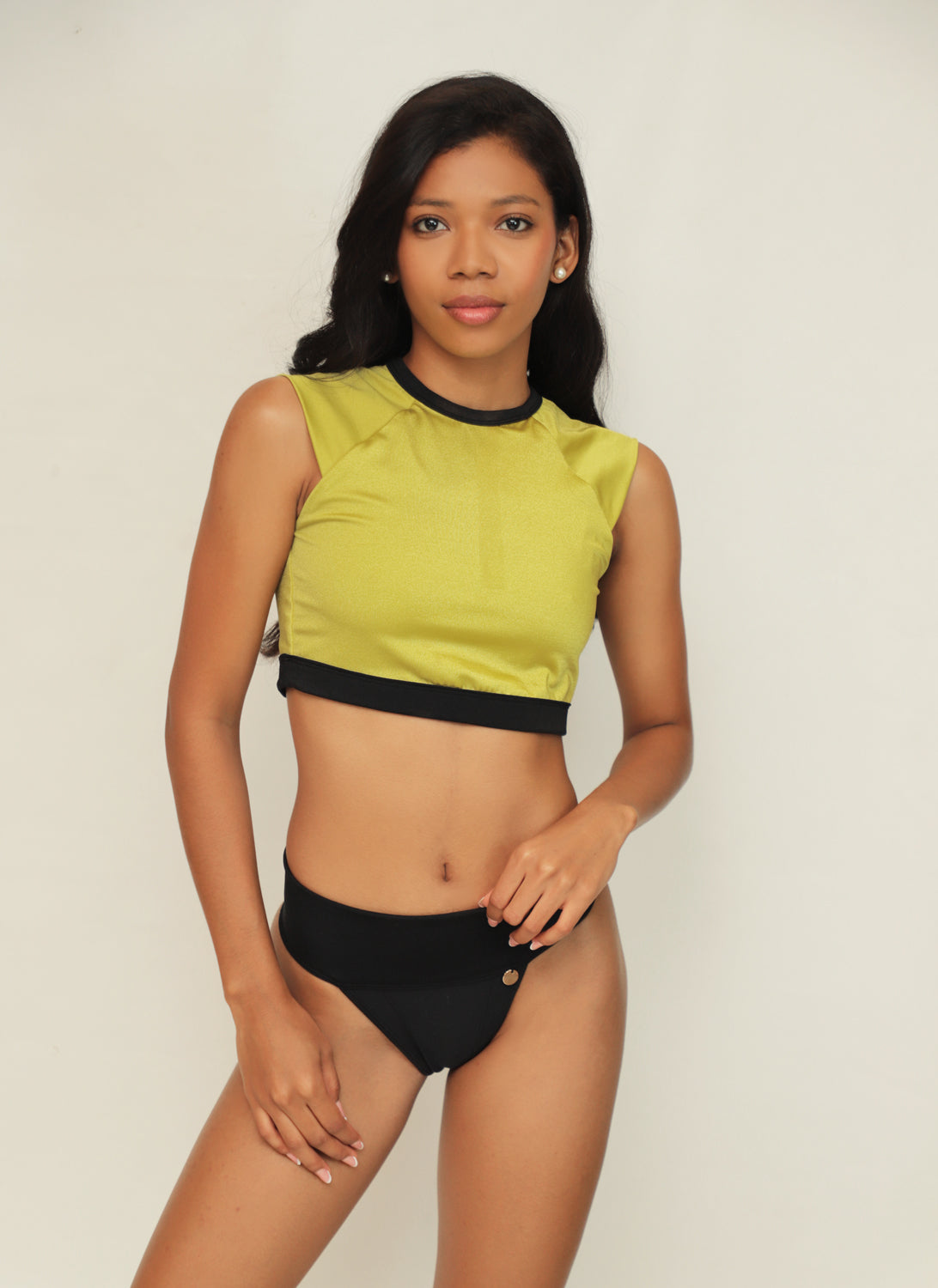 Un diseño que combina fuerza y frescura. Ecos de Coral juega con el contraste vibrante del amarillo limón y el negro profundo, evocando la energía del océano y la elegancia atemporal. Perfecto para mujeres que aman destacar con piezas únicas, cómodas y llenas de personalidad.